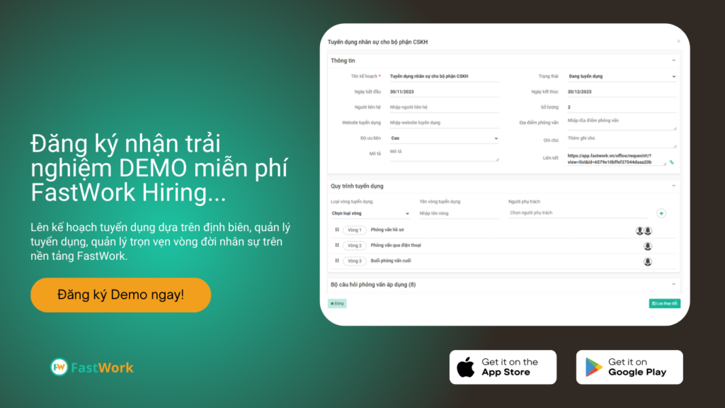 >>> Xem thêm mẹo cho nhà quản lý tuyển dụng: Phần mềm Fastwork Hiring giảm 70% chi phí và thời gian tuyển dụng