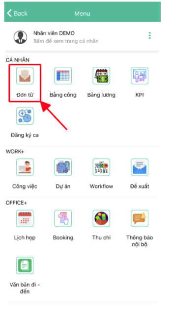 - Bước 2: Tại mục Cá nhân → chọn Đơn từ