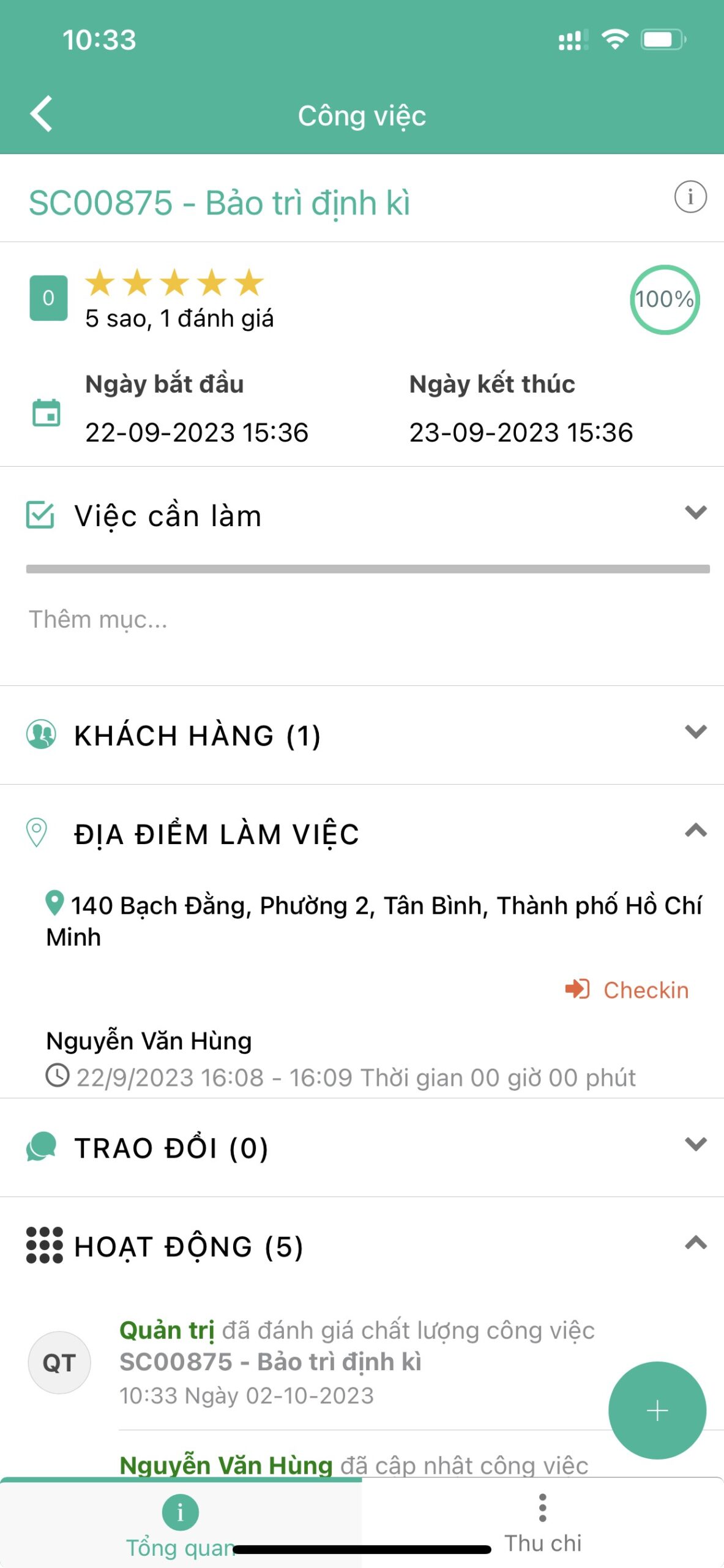 - Theo dõi realtime tiến độ thực hiện công việc thông qua lịch sử công việc, lịch sử check-in & báo cáo phát sinh của nhân viên trong quá trình làm việc